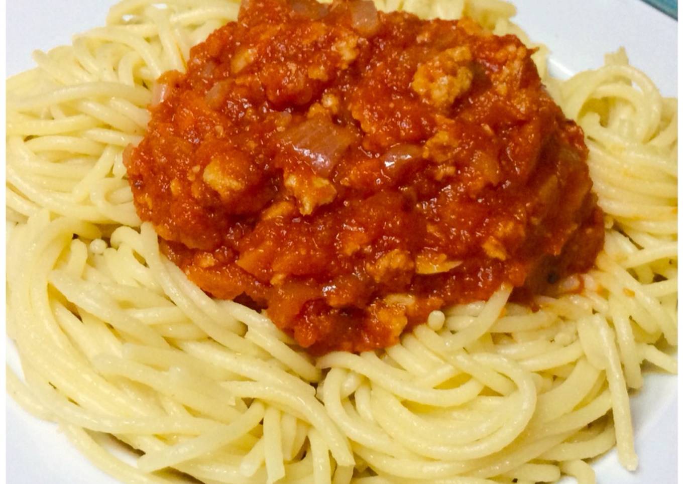 - Poner a cocer los espaguetis en abundante agua con sal hasta que estén al dente. Escurrir y saltear con 1 cucharada de aceite y los ajos finamente picados. Una vez rehogados servir con la salsa boloñesa por encima, o también mezclando todo en la cacerola.