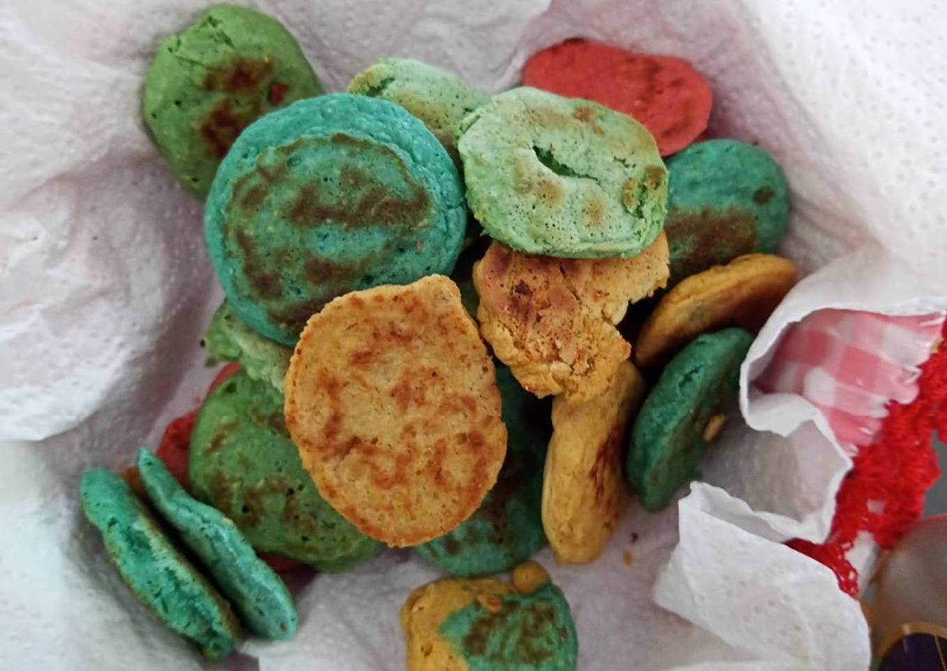 - Lleva a un sartΓ©n antiadherente poniendo 1 cda. De cada color. Retira cuando estΓ© ligeramente dorada. Puedes endulzar con cajeta o dejar naturales.