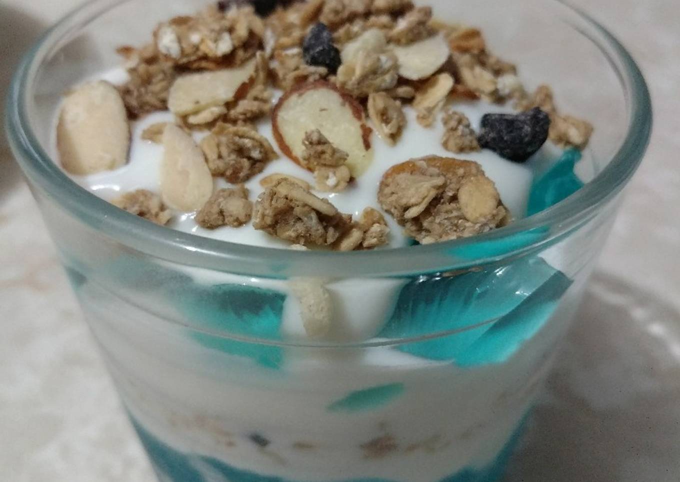 - Primero poner pedacitos de gelatina, después el yogurt y por último la granola, así lo puedes hacer dos o más veces según lo desees.