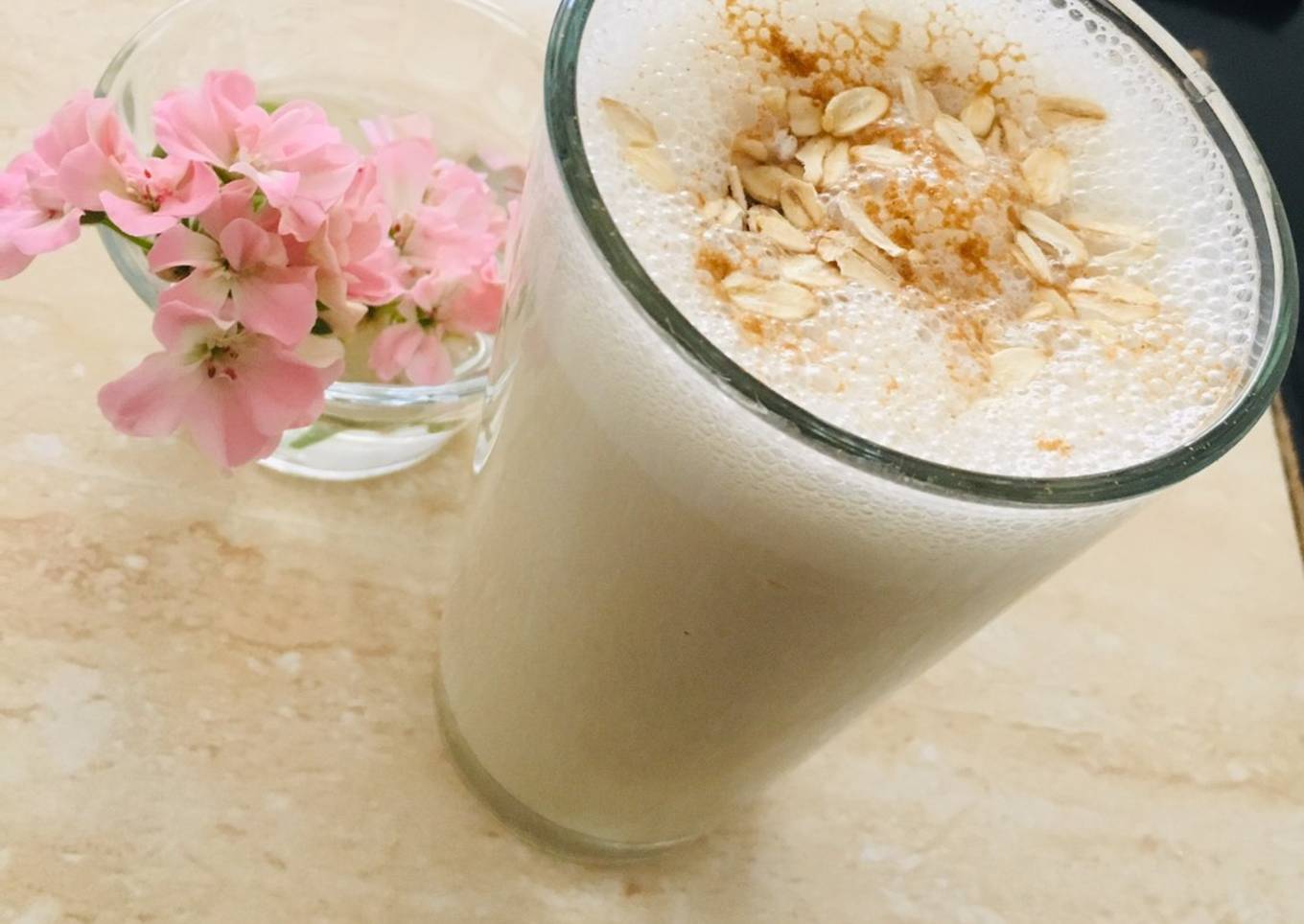 - Servimos y decoramos por encima con algunas hojuelas de avena y canela en polvo.
