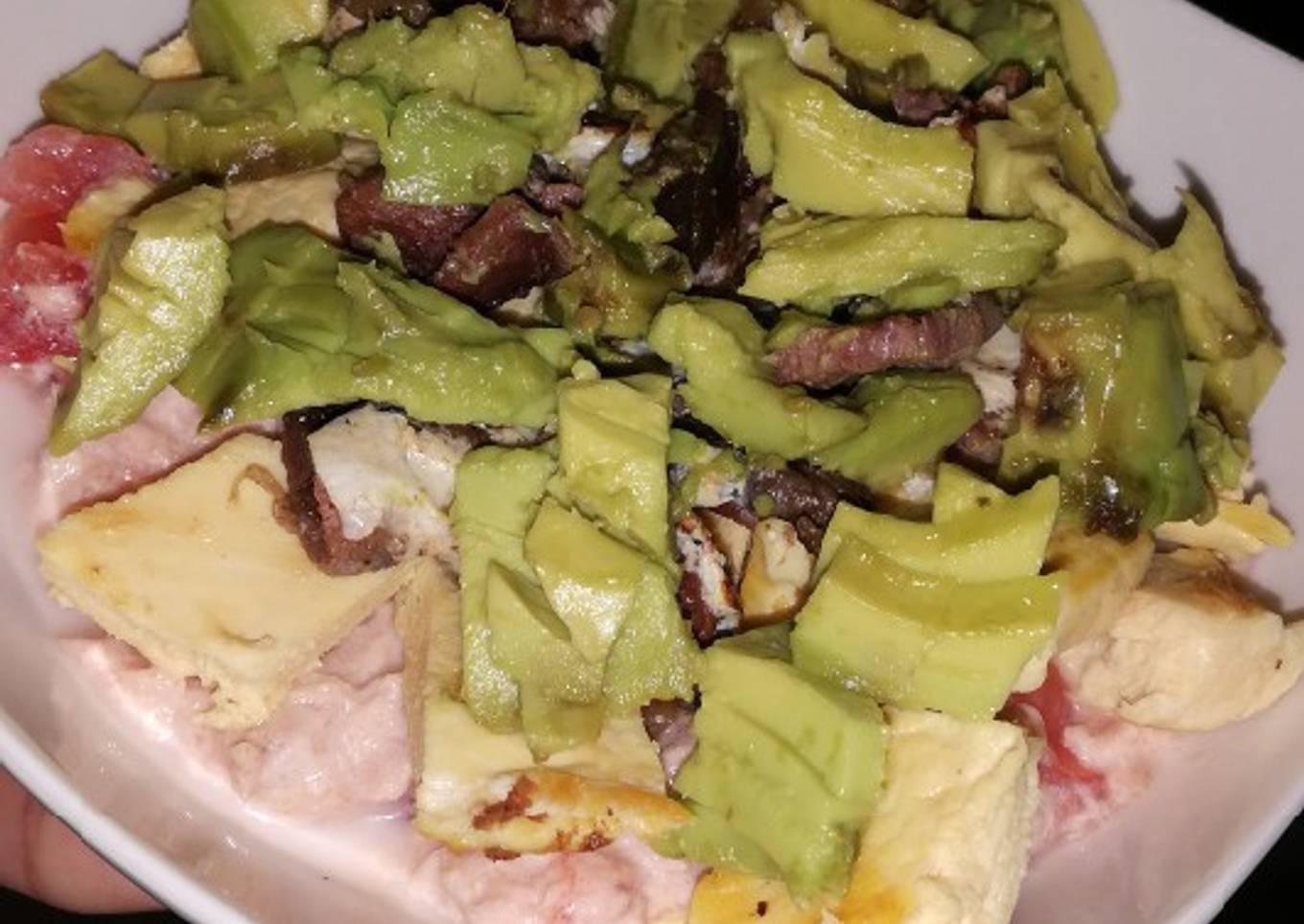 - Revolver con el Atún y el Jitomate, pero antes de este paso ya tuvieron que haber montado el Atún con el Jitomate en un Bowl para que puedan poner la Pechuga encima