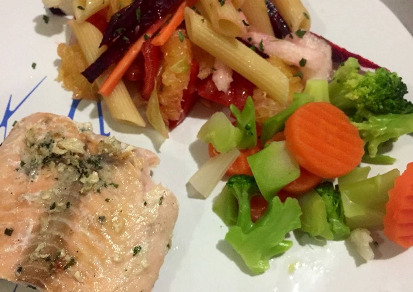 Salmón con ensalada y verduritas